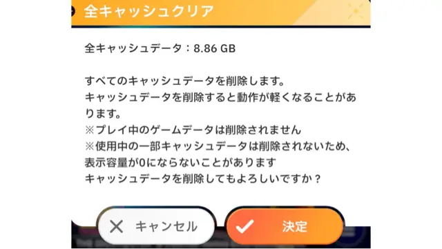 Safariと同様にゲームにおいてもキャッシュ削除が容量の削減に有効です。