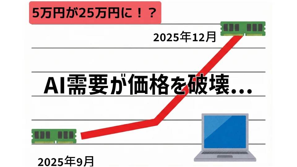 すでに複数の大手PCメーカー(DELL, HPなど)からは価格改定の予告がされており、早ければ12月中旬から2026年の1月には多くのメーカーで値上げが実施される見込みです。